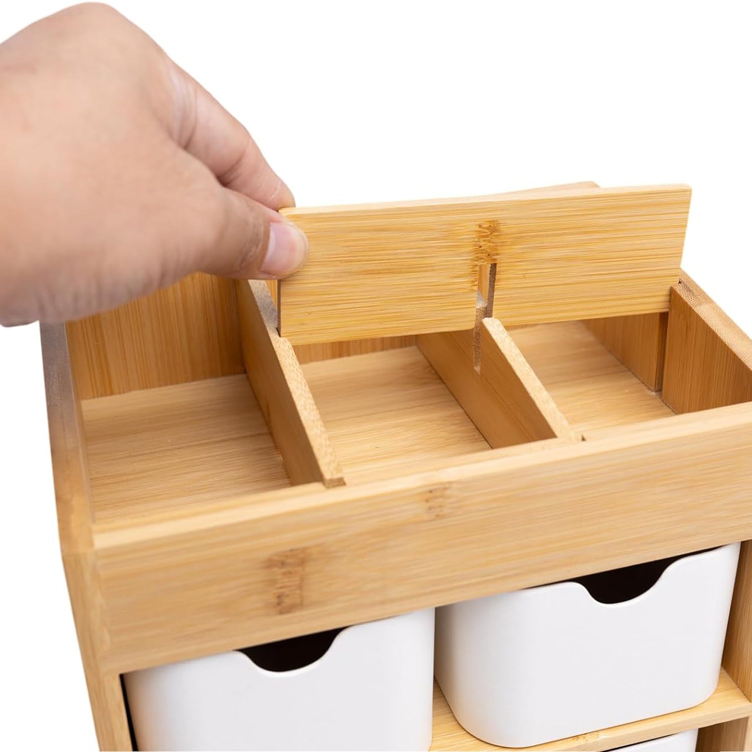 EFFORTLESS DESK COUNTERTOP ORGANIZATION :This bamboo desk organizer is your versatile storage partner for office stationery, beauty supplies, and bathroom essentials. Its elegant design brings a natural, aesthetic touch to any space.