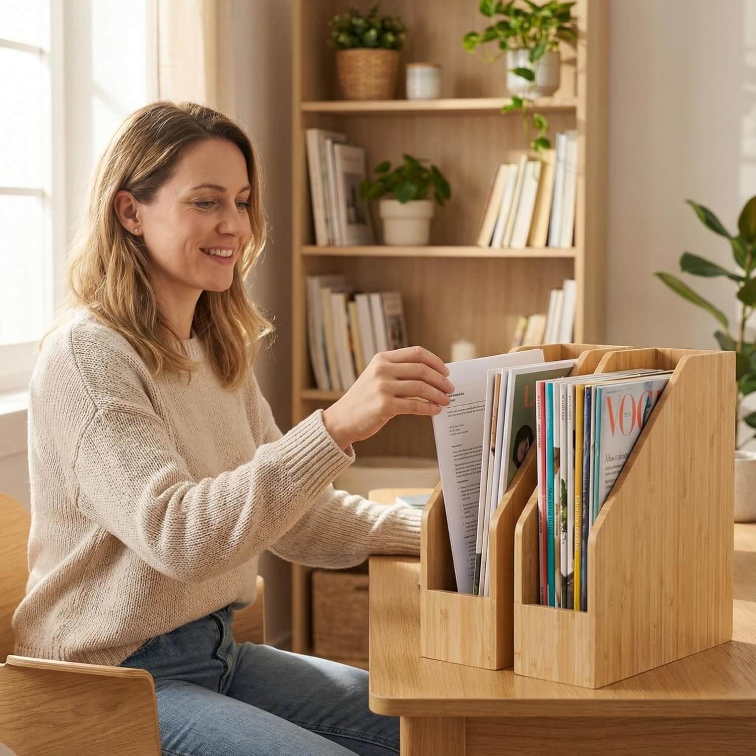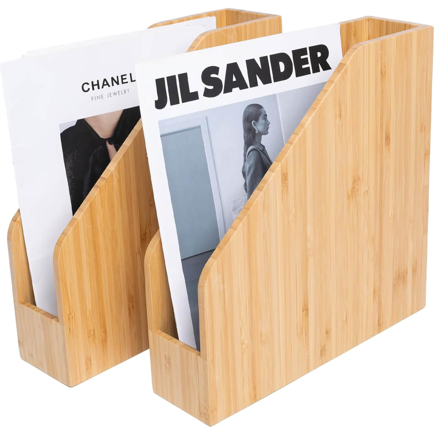 2 Pack Bamboo File Folder Holder Book Holder Frames Document Cabinet Rack Storage Organizer Small Magazine Shelf for Home,Office